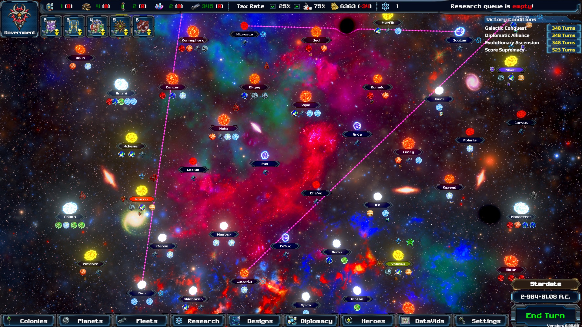 Encounter and recruit amazing galactic heroes, to lead your fleets, govern your colonies or even spy on your enemies! Make havoc without firing a single blast, by conducting Sabotage and Revolt, among other operations, deep behind enemy lines.