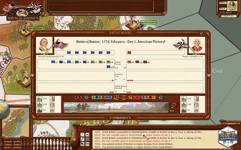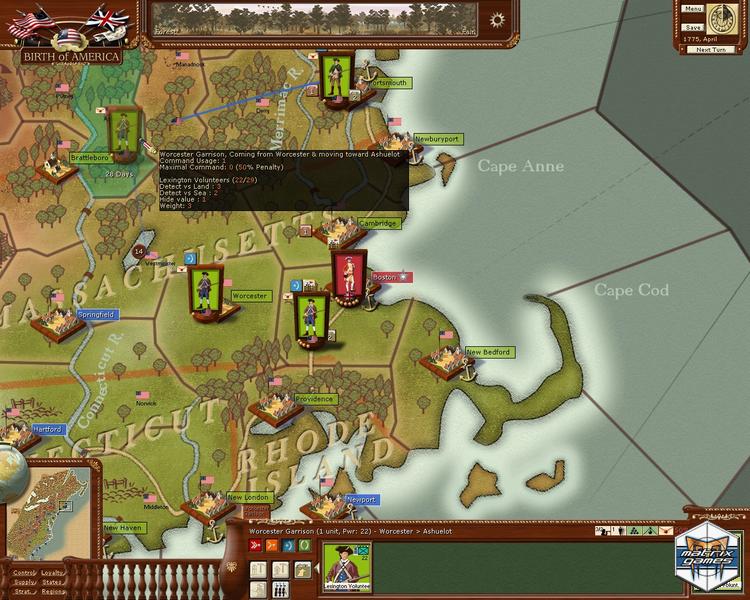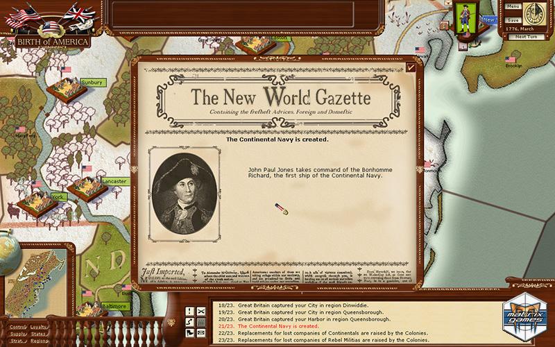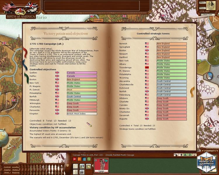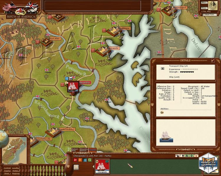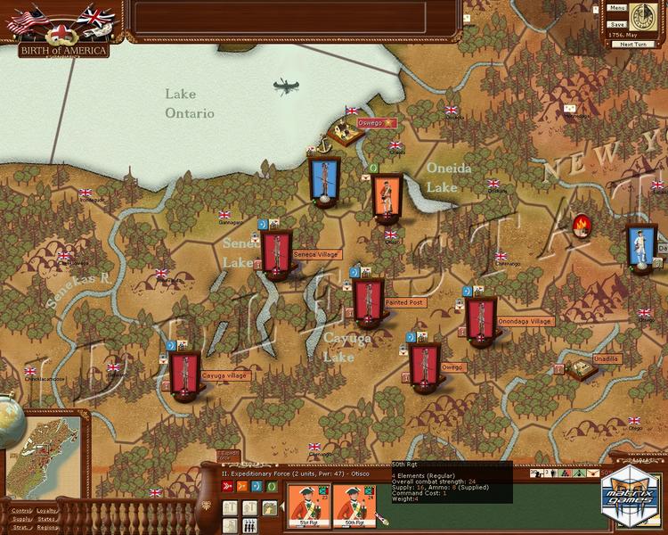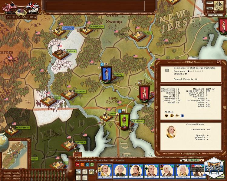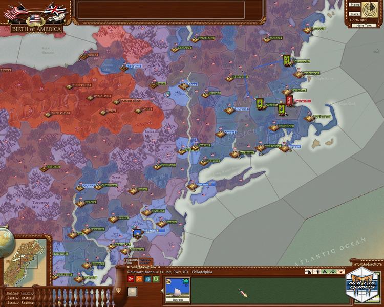 Birth of America is an American Revolutionary War/French and Indian War grand strategy title based on a simultaneous monthly turn style of play. With 10 different scenarios, the game covers both the French & Indian War and the American War of Independence.