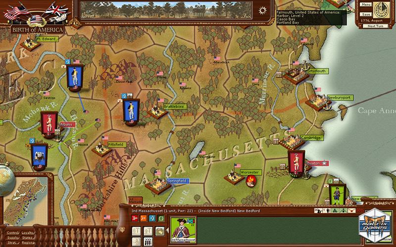 Immerse yourself in Birth of America for PC. Birth of America gives you command of the military forces vying for power. This includes such activities as drafting forces, building forts and depots, sieges and blockades, raiding enemy set and more.