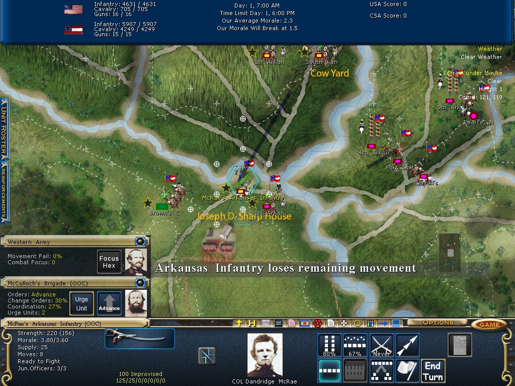 Weather, formations, supply, skirmishers, brigade orders, mounted and dismounted cavalry, corps intelligence, division orders, even battlefield smoke are all modeled… and more!