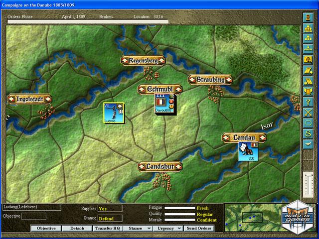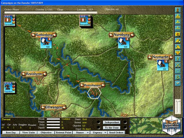The Campaigns of the Danube 1805 & 1809 is a turn-based operational strategy game where players are able to take command of the French forces under Napoleon, or otherwhise of Austrians under Charles, and strike at each other over a large hex-based map.