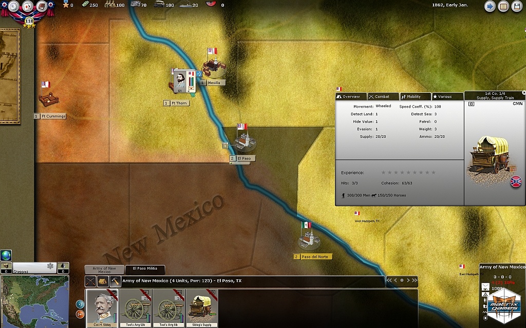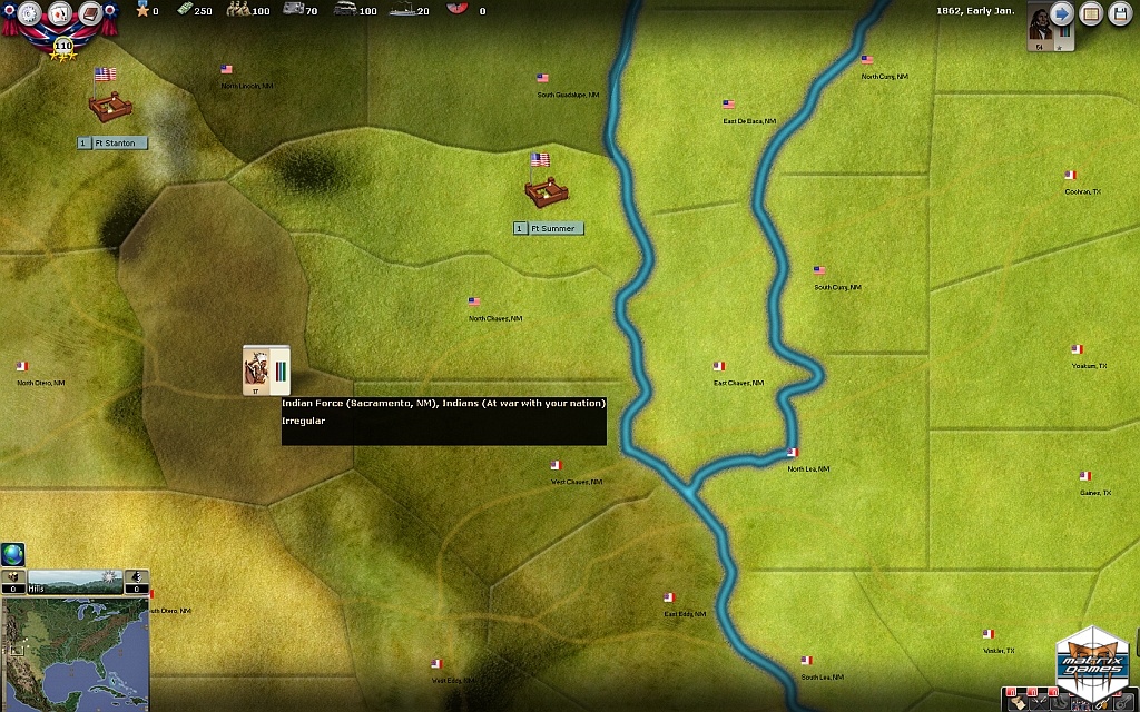 The game has an innovative card system that lets you trigger events such as Indian raids and partisans attacks, which used wisely can affect the flow of a campaign.