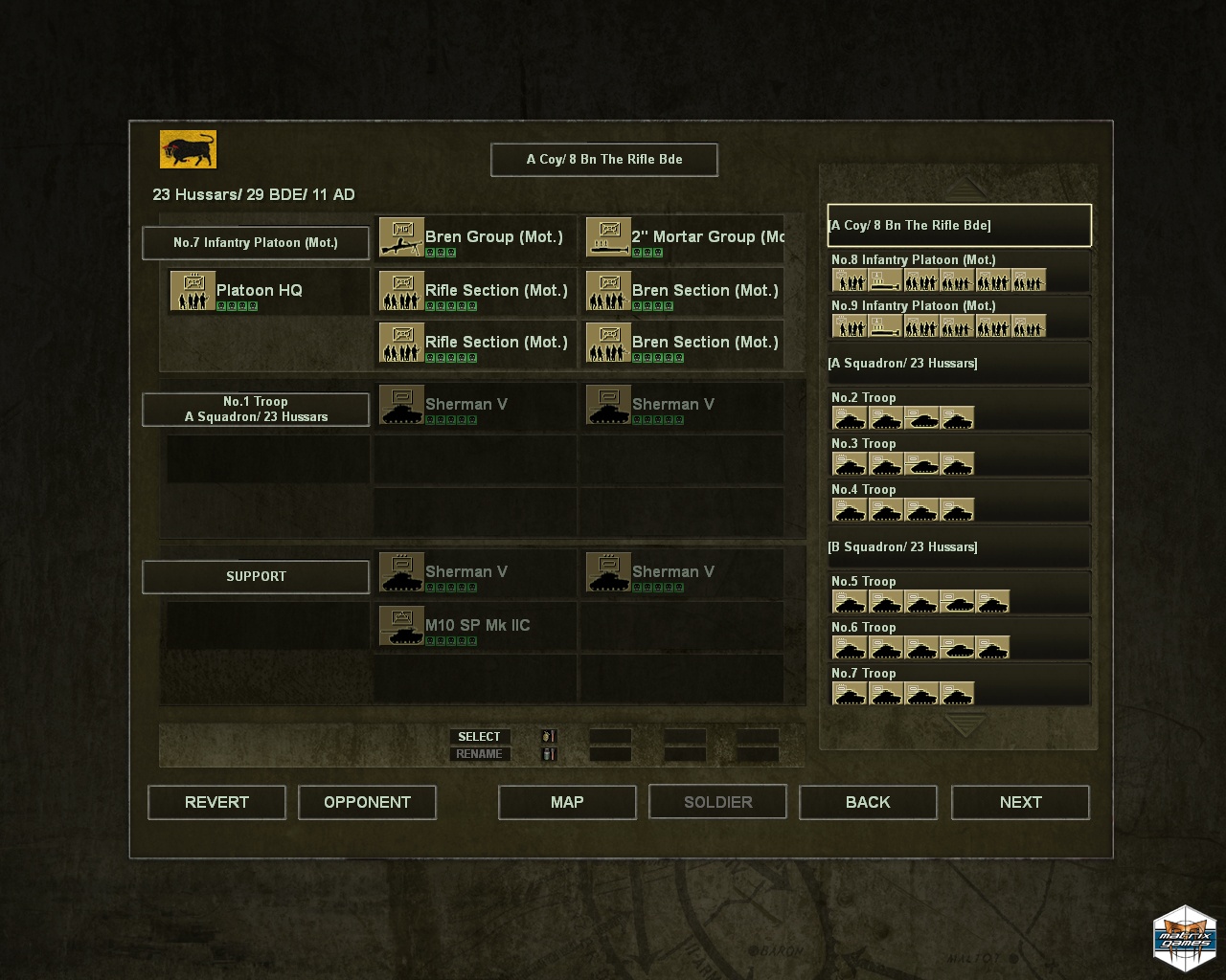 Players can experience the desperate situation of the outnumbered, but well-armed Panzergrenadiers, or the daunting offensive mission of the fully-supported British infantry advancing across the treacherous Odon Valley. At your command are Churchill, Cromwell, Firefly, Sherman, Stuart tanks and more. Panther, Tiger, Stug, and Mk.IV tanks will arrive to support German Panzergrenadiers as they try to hold the line against a concerted British attack.