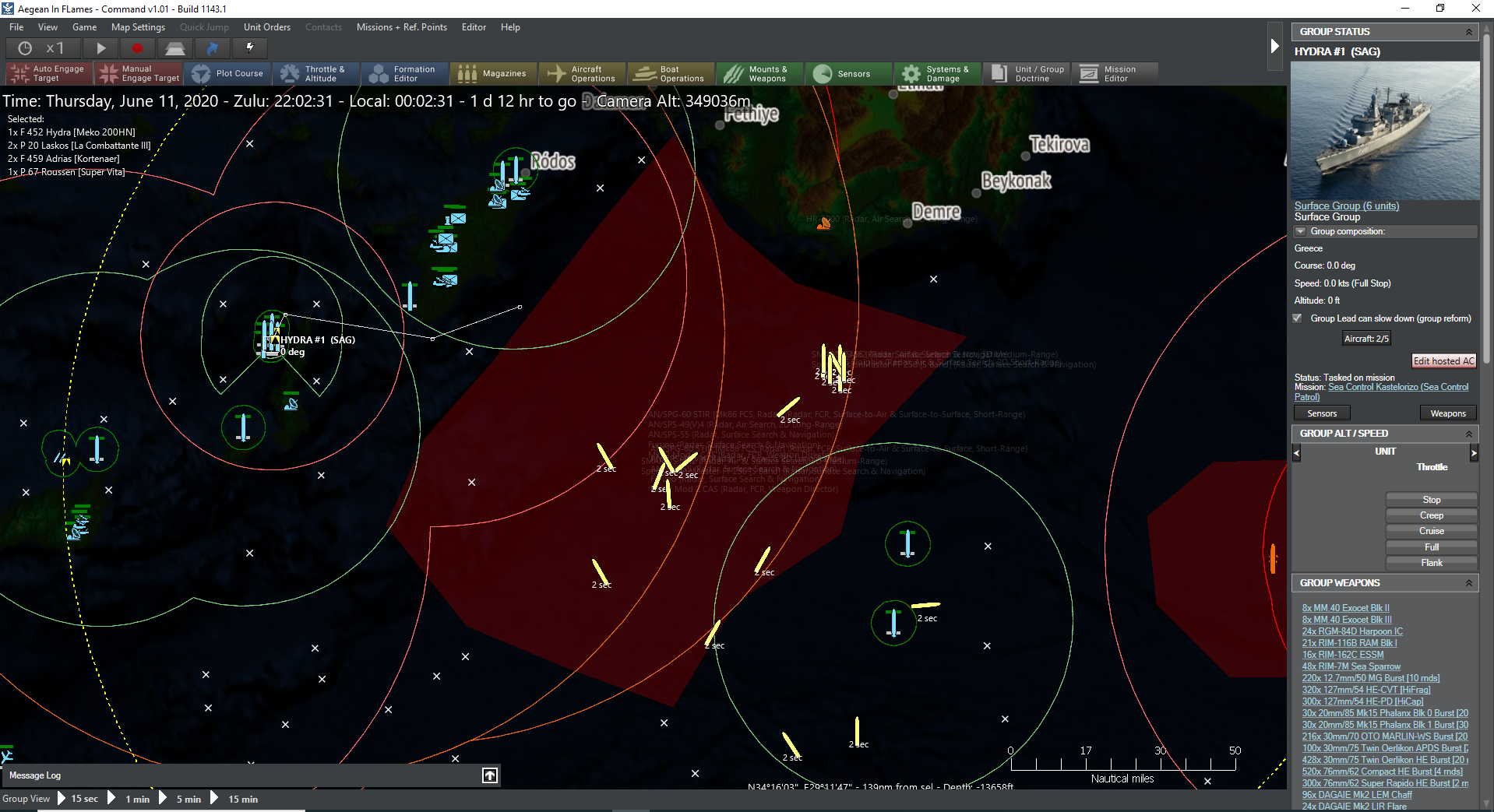 Due to Jamming from both sides, AIS (civilian Automatic Identification System) is not fully functional. Situation is complicated for both sides and civilian or allied casualties will create a diplomatic turmoil. Moreover a US Sub has left Suda port a few hours before and operates in the wider area, with unknown intentions. It is clear though that any attack on it will be considered as an act of hostility from the US.