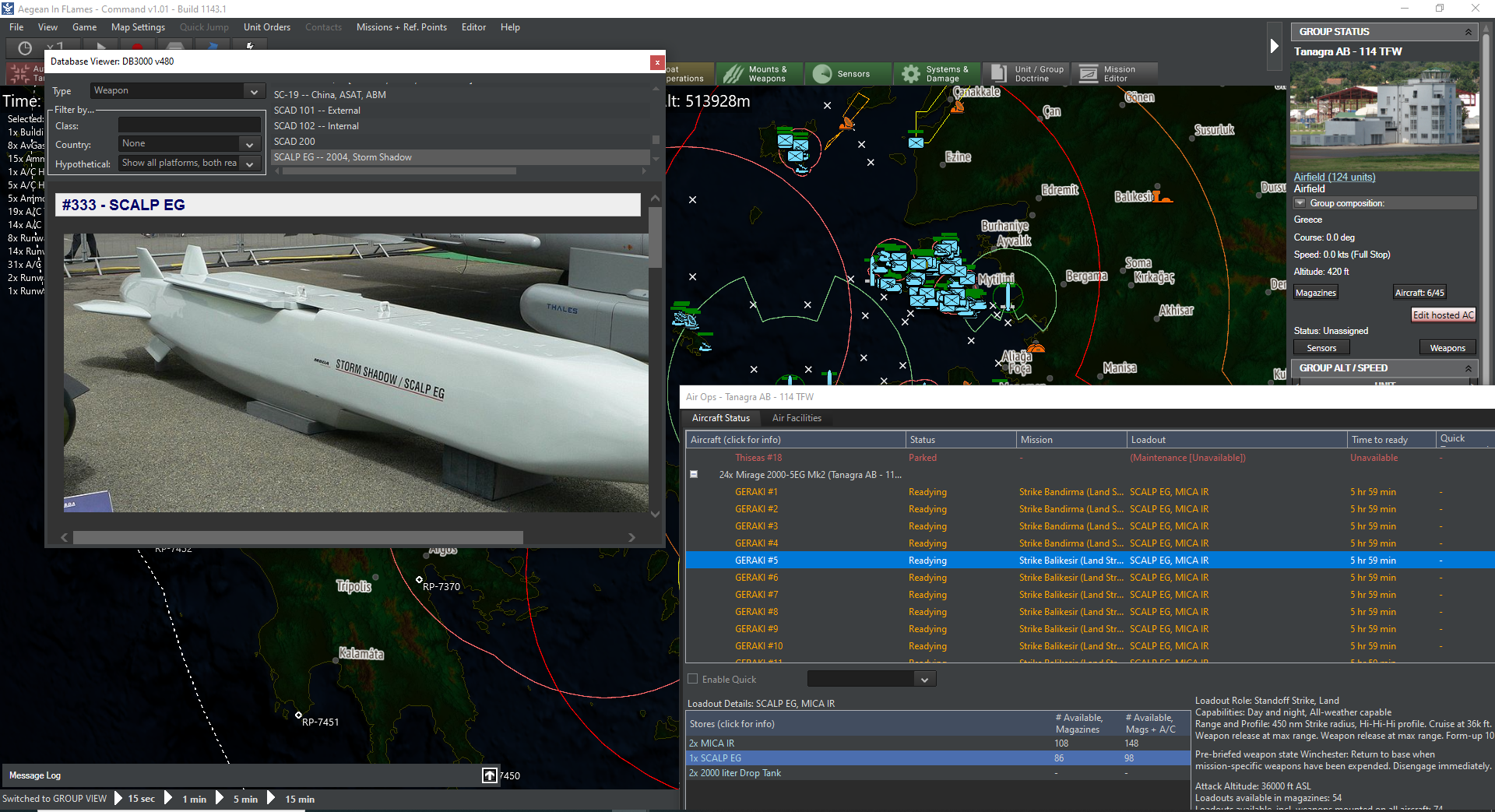 • Dense IADS network on both sides including Patriot PAC-3 (MIM-104), S-300 PMU-1 (SA-20), Crotale NG, HAWK (MIM-23), Buk M1(SA-17), OSA AKM (SA-8), Tor M1 (SA-15)  on the Greek side and recently delivered S-400 (SA-21b), upgraded Rapier B1X, Altigan and HAWK (MIM-23) on the Turkish side