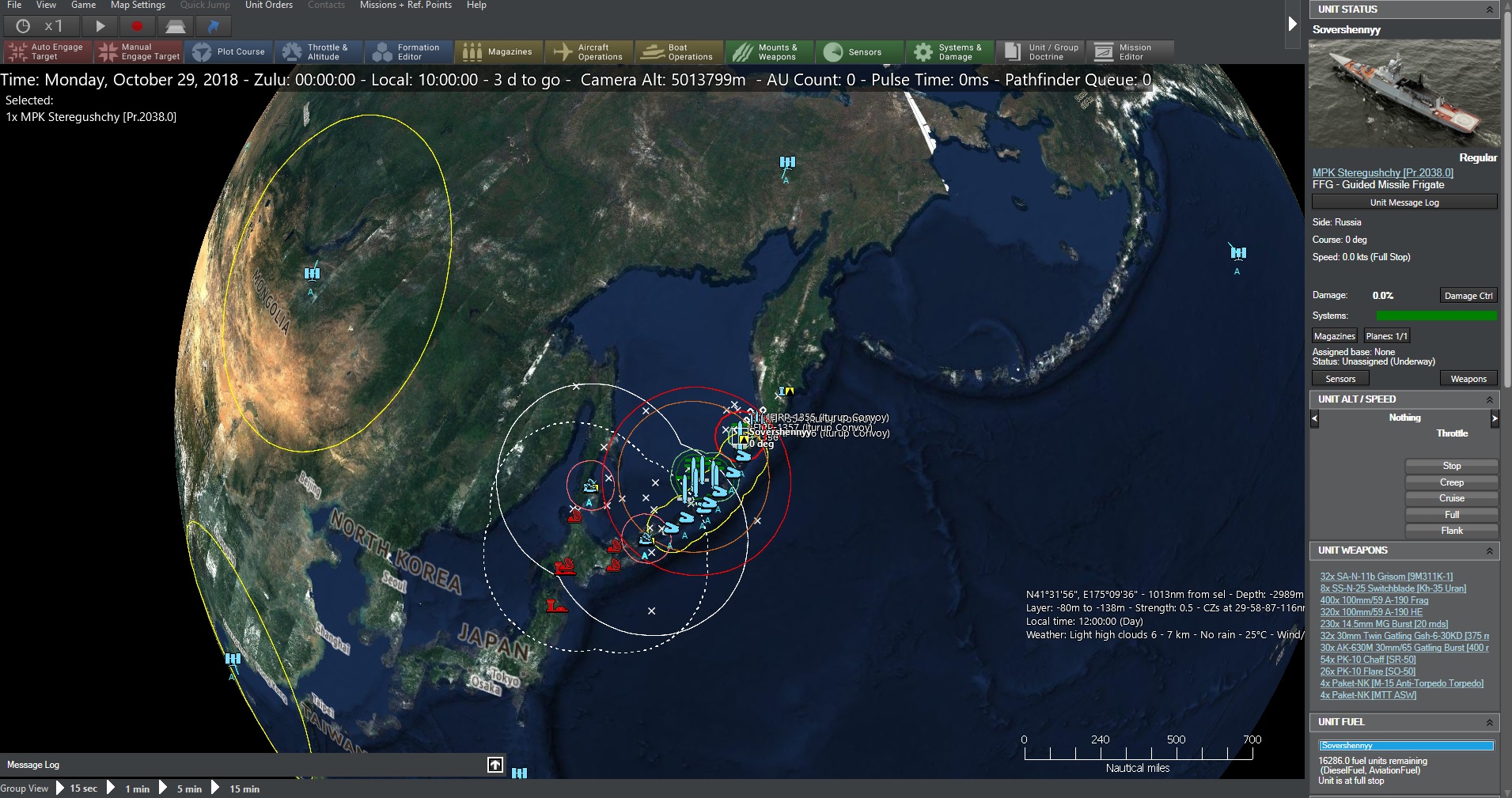 The Russians have been slipping troops in, but an improvised convoy has been readied at Petropavlovsk-Kamchatsky to carry much heavier forces to Kunashir and Iturup. Should it reach the islands safely, the Japanese goal of taking them without excessive casualties will be impossible. On the other hand, if it's sunk, the Kuriles are Japan's for the taking. The stakes are thus extremely high.