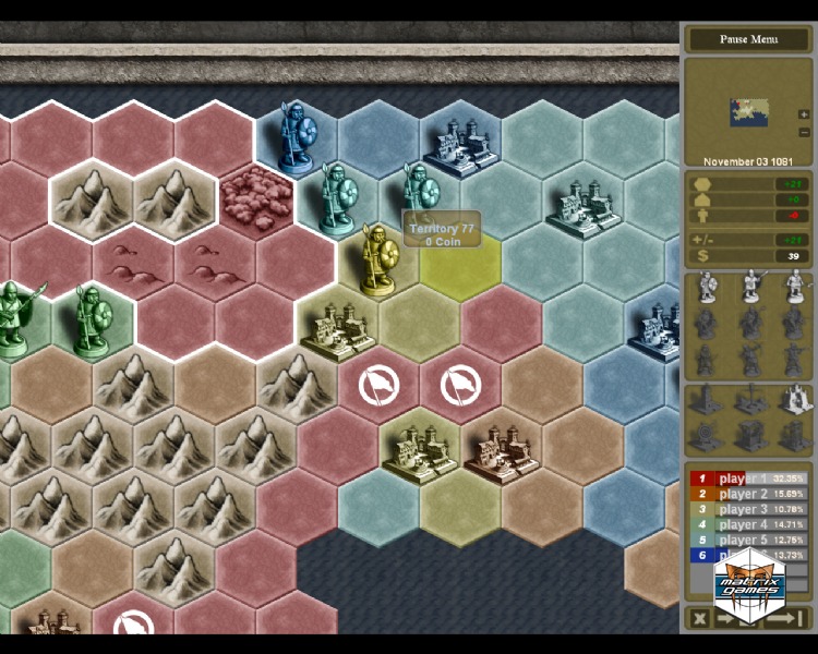 To gain supremacy, players will need to unite their spread out lands, build a roaring economy, and raise powerful armies to divide and conquer their enemies. Boost your income via markets and mines, upgrade your armies with stables and archery fields, or amass a large force, but sound strategy and careful thought will help you more than brute force.