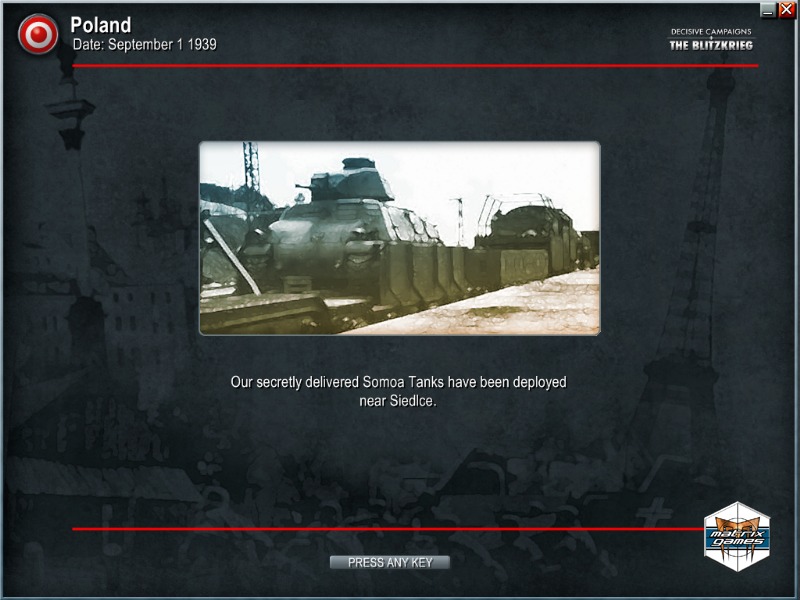 ©2015 Matrix Games Ltd. All Rights Reserved. Decisive Campaigns: The Blitzkrieg from Warsaw to Paris, Matrix Games Ltd. and their Logos are all trademarks of Matrix Games Ltd. All other marks and trademarks are the property of their respective owners. Developed by VR Designs & Matrix Games Ltd.