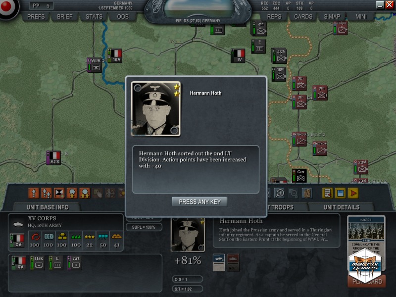 Once in the battle, players move regiments and divisions, coordinate attacks and manage logistics in what we feel is the definitive game on the campaigns of the early Blitzkrieg. There are also unique actions for individual historical generals to give a particular objective or front the extra needed push to victory. Decisive Campaigns: The Blitzkrieg from Warsaw to Paris also includes a unique multiplayer feature where players can split up Axis or Allied armies between several people to add an added level of realism and cooperation!