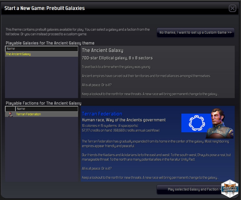 - Use a previously saved and editor-customized game as a map for a new game (instead of generating a new galaxy)