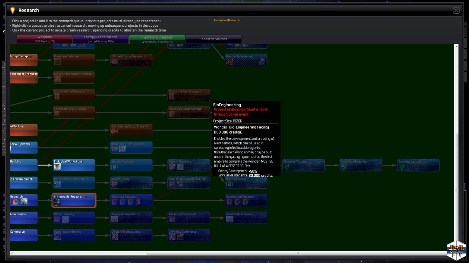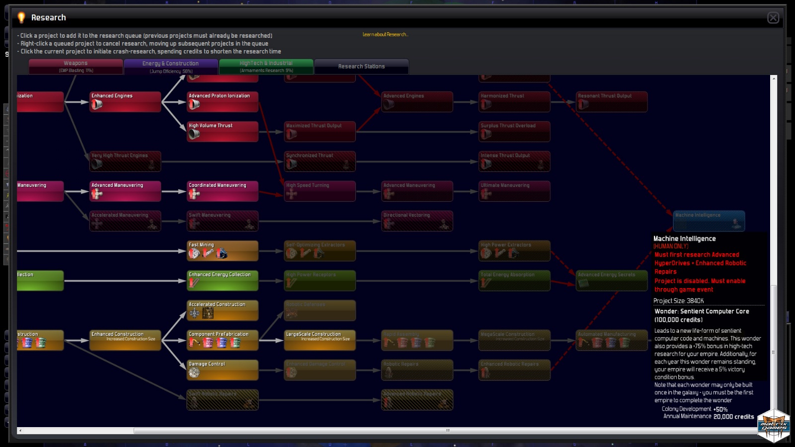 - Allows adding/removing/changing most items: resources (including new colony-manufactured resources), ship components, planetary facilities and wonders, fighter designs, alien races and race families, diplomatic dialog, empire policy, custom characters, ship and base design templates, governments, plagues, research tech trees and more!