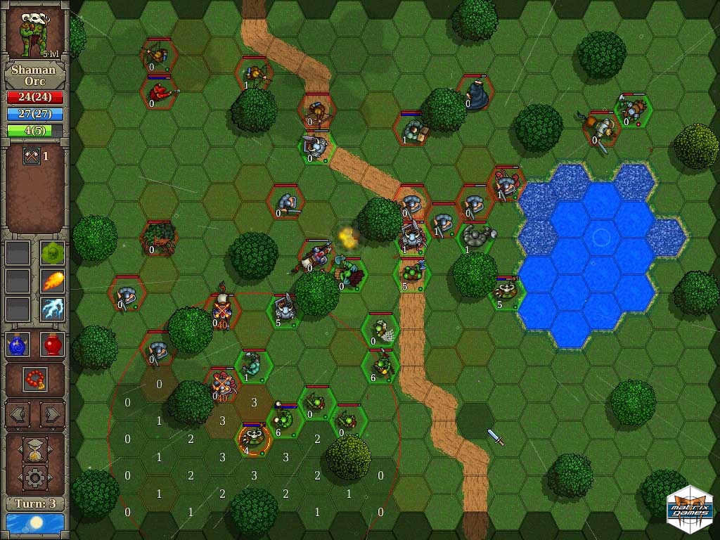 Almost every environment object is interactive – one can chop down a tree, set it on fire, or even turn it into an ally using magic. Each unit has its own action points which can be spent for any action – movements, attacks, spells or active skills. The player can randomly move units during his turn.