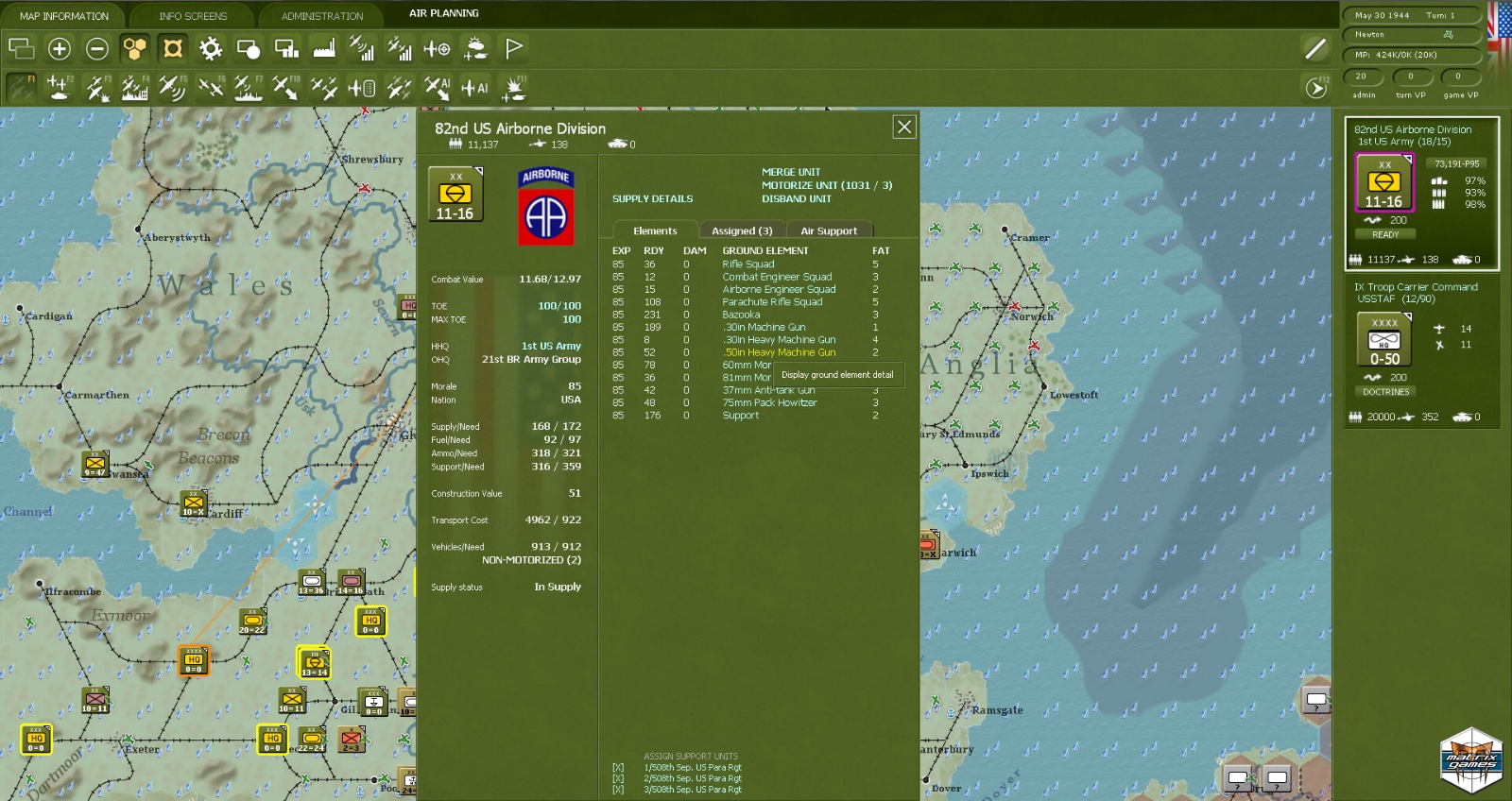 - Level of player involvement can be tailored by use of Auto Air Direction Creation screen to quickly generate Air Directives based on top level priorities