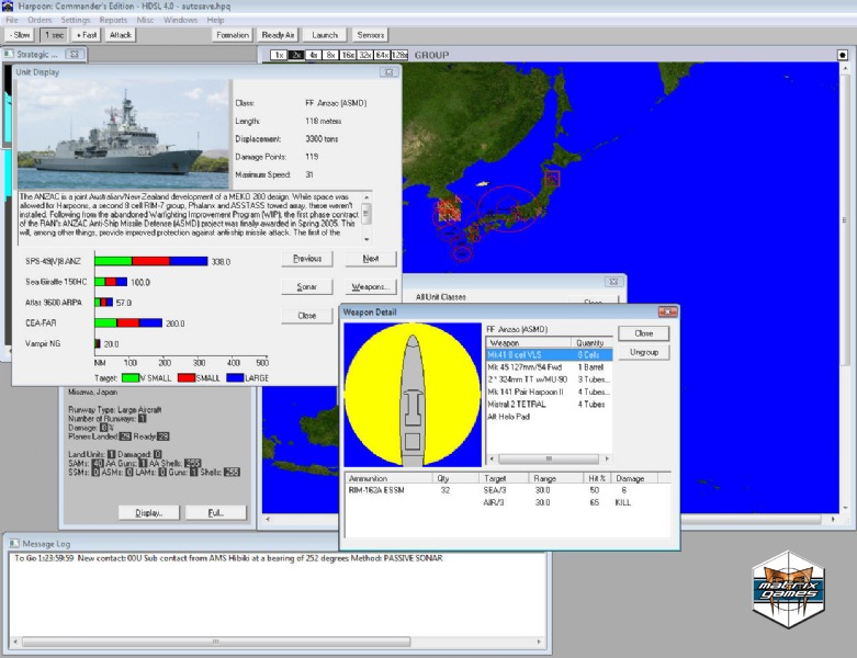 The two flagship products in the Harpoon line up, Advanced Naval Warfare and Commander’s Edition come highly expanded and improved from their previous versions. Advanced Naval Warfare comes with a full suite of editors, upgrades and expansion to the sonar models, boarding actions, encrypted databases, and more! Commander’s Edition sports an all new EMCON AI, an expanded WestPac BattleSet, a greatly improved HCDB database, and more!