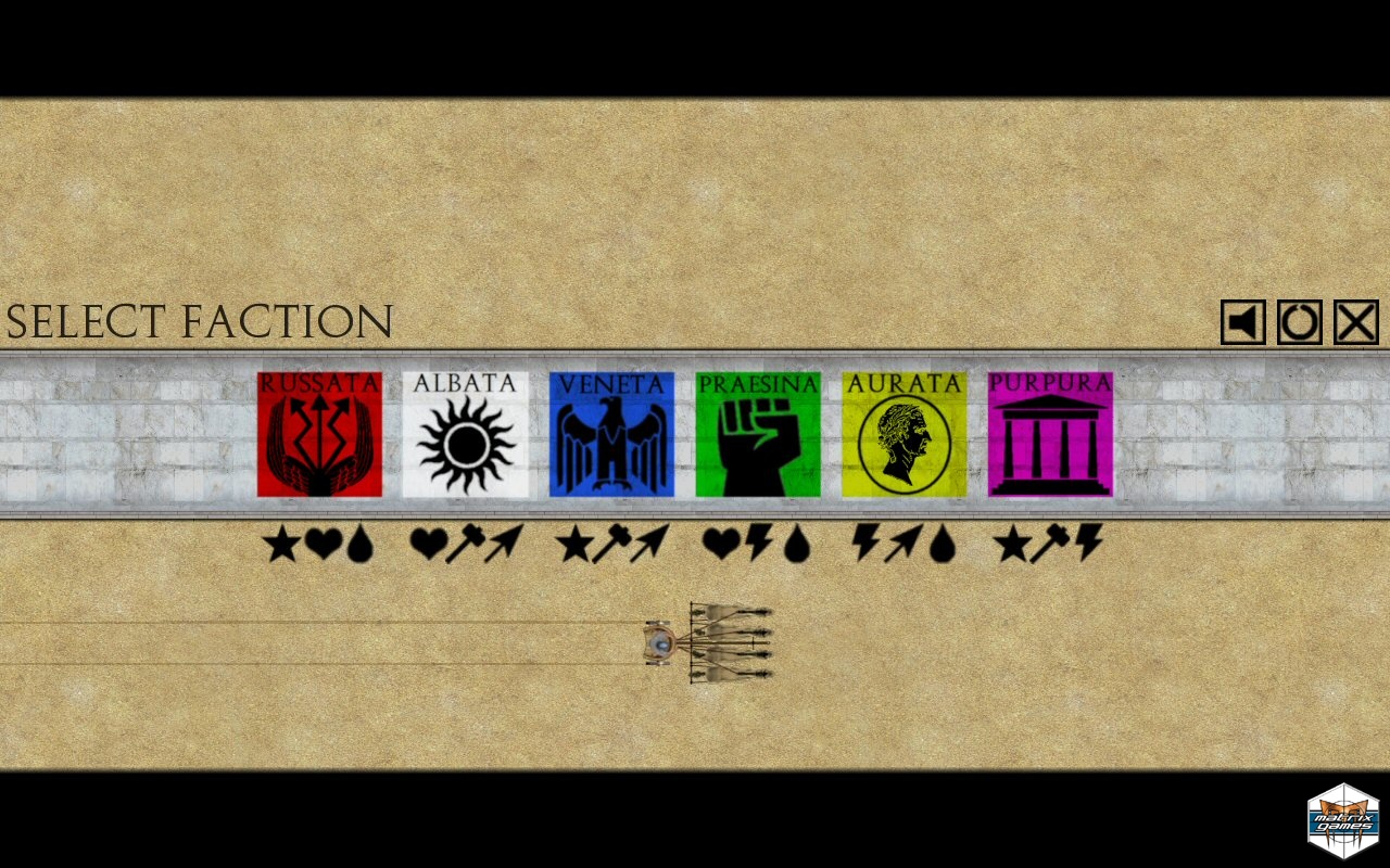 Huge campaign system with seven regions to travel, starting in any of them, from the exotic arenas of the far East to the Northern barbarian borders. 43 circuses to run, seven starting circus available from the beginning, unlock higher category circuses by building your fame.