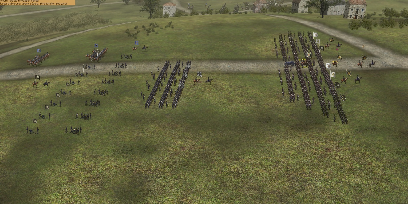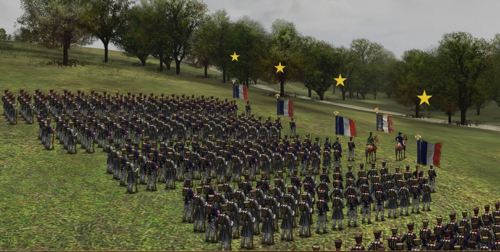 Scourge of War: Waterloo has 2D sprites drawn on a 3D terrain and in doing so, is capable of showing far larger armies than most games out there. Players can zoom out to great heights to get the best overview of the battle, or zoom in and get right into the action. All units have historical uniforms and carry historical flags. Leaders stand out well enough to easily find them.