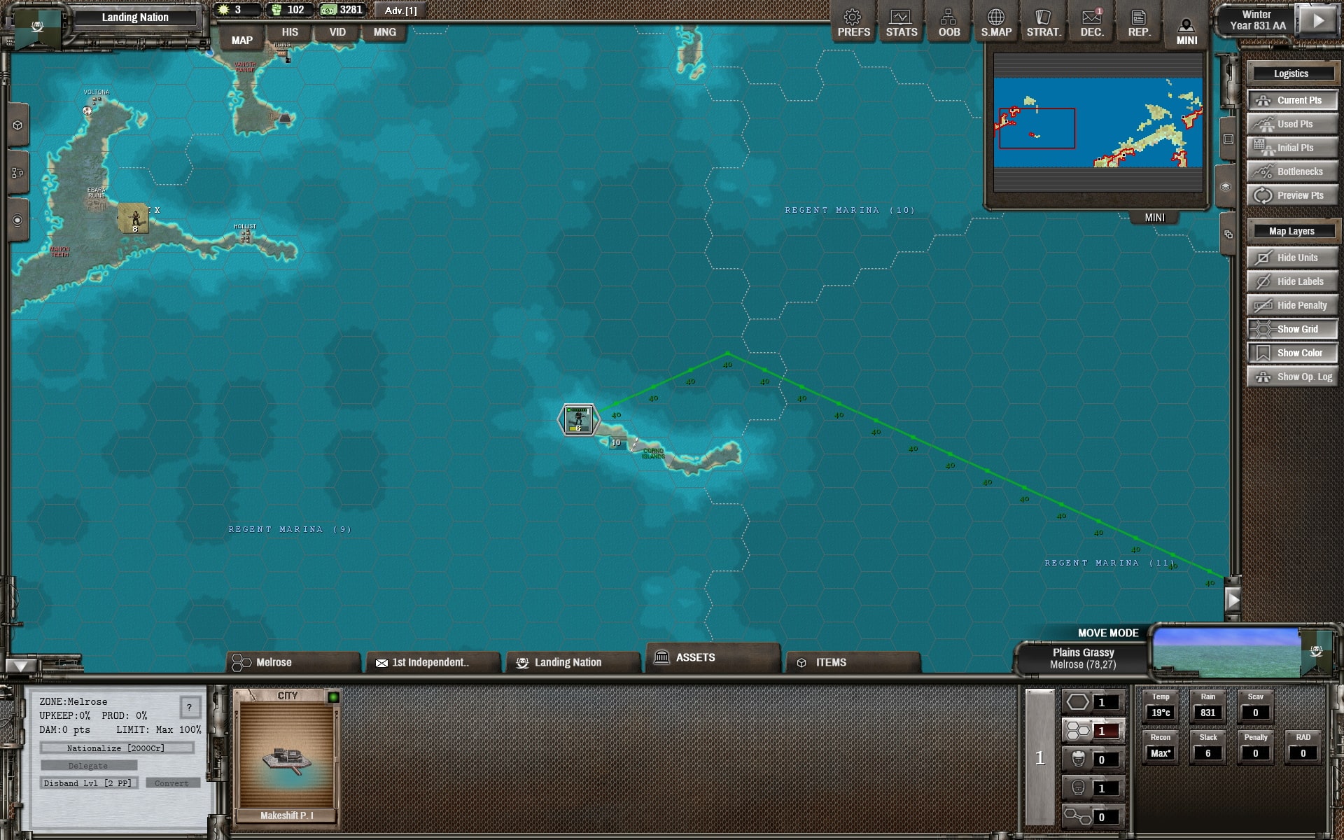 Note that the player does not control any naval units and all maritime action is simulated through the MTHs.