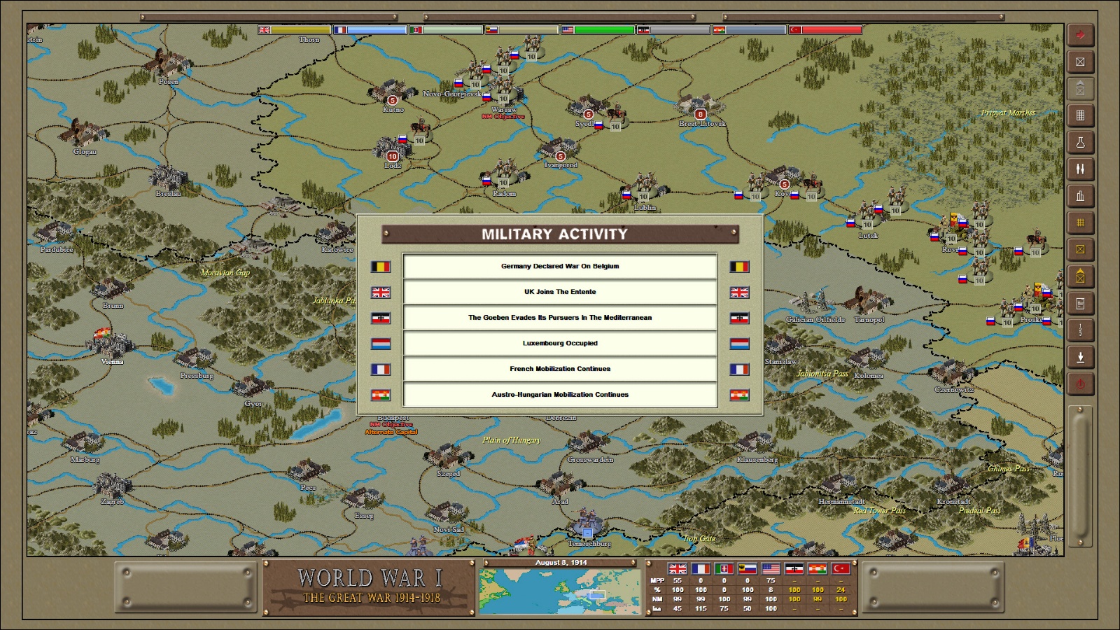 Strategic Command World War I: The Great War contains a number of major campaigns that span the period including a monster campaign featuring the biggest map of Europe and the Atlantic yet, at over 39,168 tiles, or 384x102!