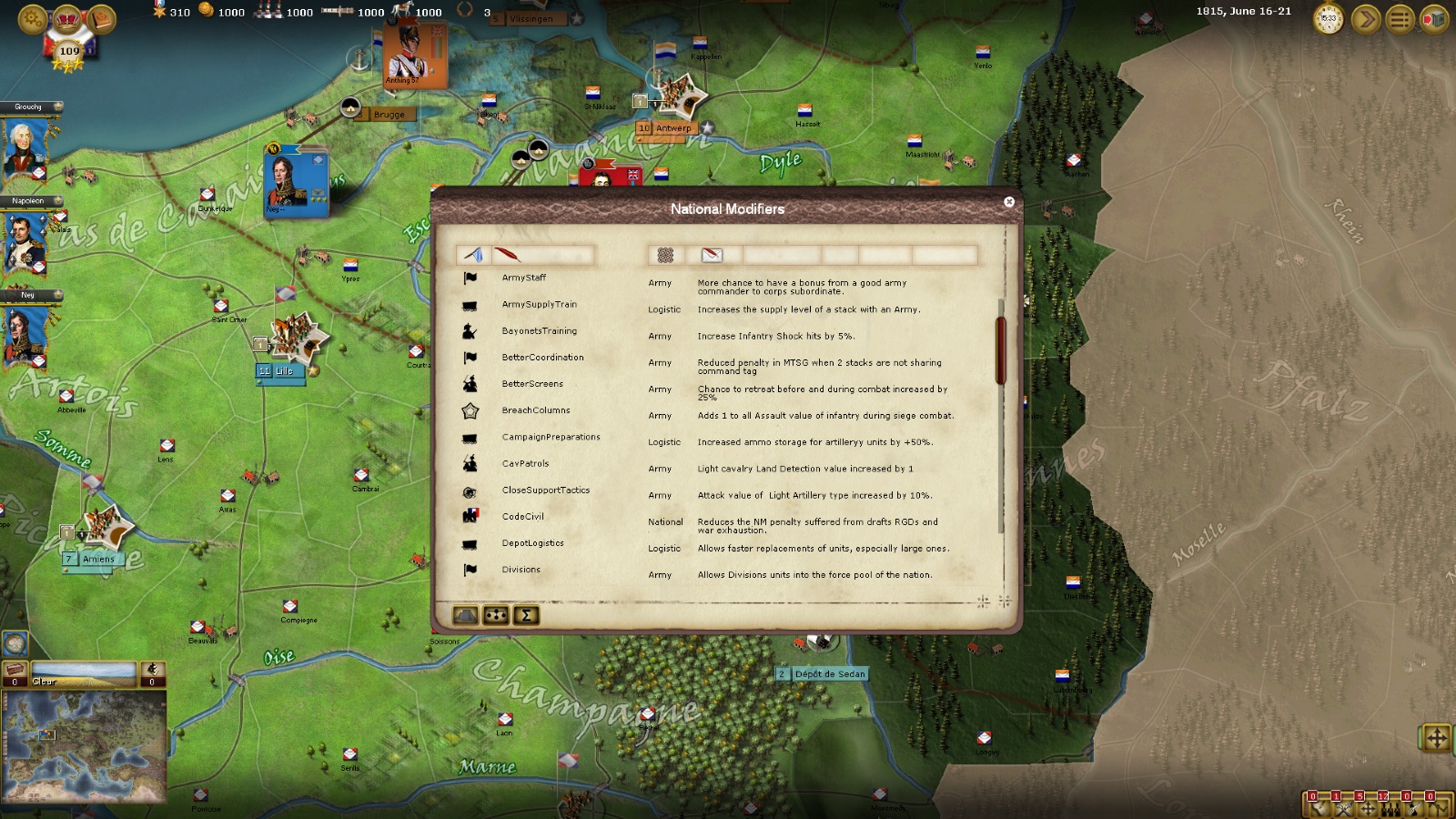 You will have wo set of uniforms for most soldiers depending on army reforms. More than 300 different uniforms from accurate sources, and over 400 portraits of generals redone from historical paintings and sources.Numerous historical options, including reforming your nation and army the way you want.