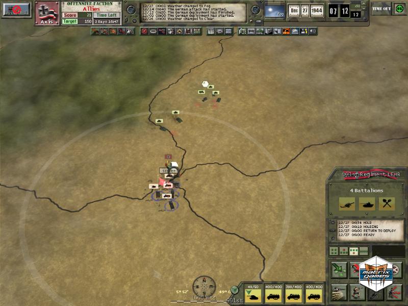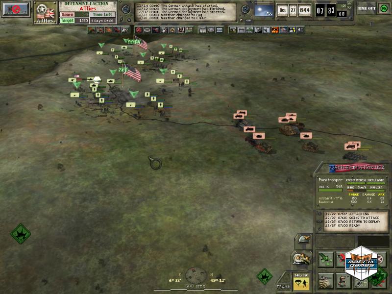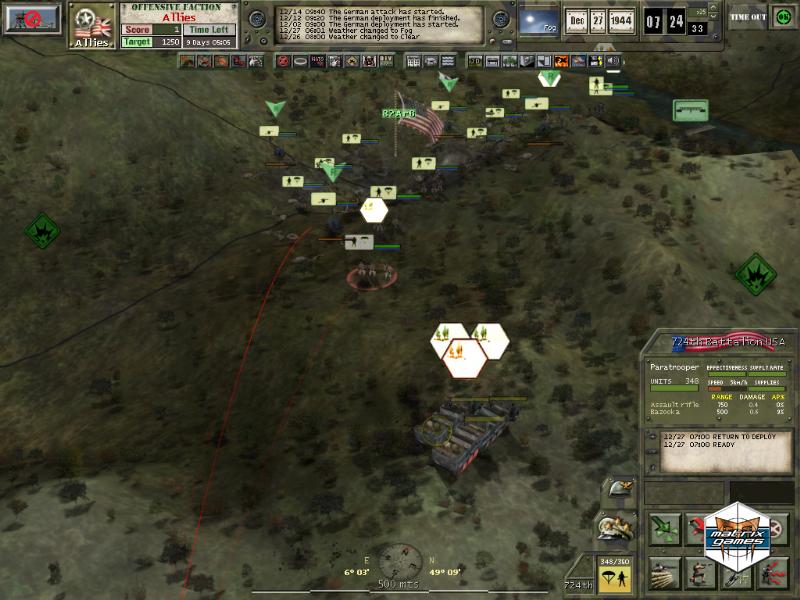December 1944 - Germany conducts her last great offensive of the Second World War in what is known as Operation Watch on the Rhine, or the Battle of the Bulge, throwing her last reserves against a thin Allied front line in a bid to unhinge the entire Western Front. Tens of thousands of solders, supported by tanks, artillery and airpower fought for three dramatics weeks around the Ardennes forest to determine the outcome of this gamble. Now you can step up to the commander’s seat and lead your divisions to stop the German offensive or break the Allied defenses.