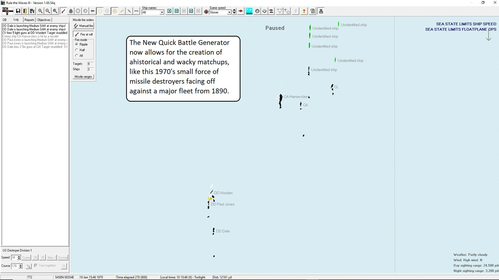 Rule the Waves 3: Expanded Battles is a new DLC that will give you the ability to generate custom naval battles straight from the games start menu. You will be able to choose the time period, scale, and location of your fleet actions, and design custom ships for the battle. Pre-made historical battles will also be included like Second Guadalcanal and Dogger Bank.
